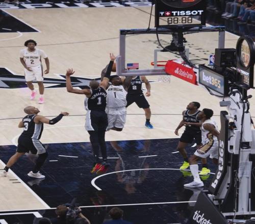 四节比分(鹈鹕在前):25-28、31-19、26-21、22-27。第四节马刺轰出一波24-5,一度完成反超。但鹈鹕还了一波13-0,直接带走比赛胜利。福克斯8中4得到12分7助4失误,罚球4中1;卡斯尔投篮6中1仅得5分4板5助2失误。